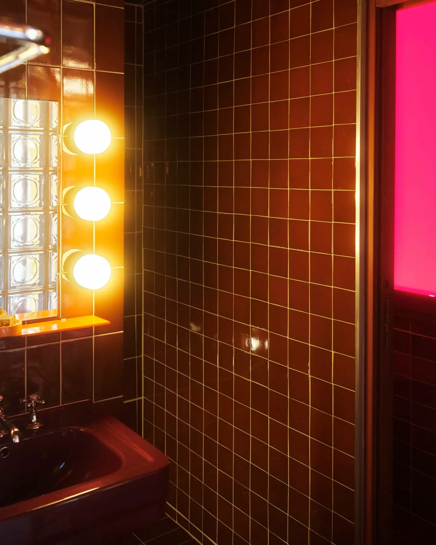 L’ensemble architectural, rénové avec le soutien technique de Surface Studio, propose de multiples références, des pavés de verre de Pierre Chareau, au carrelage de l’utopie radicali, ou encore à l’alliance du bois et du béton chère à Alvar Aalto ou Oscar Niemeyer.