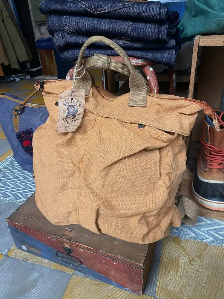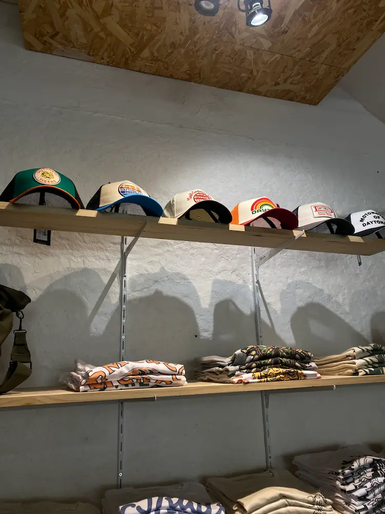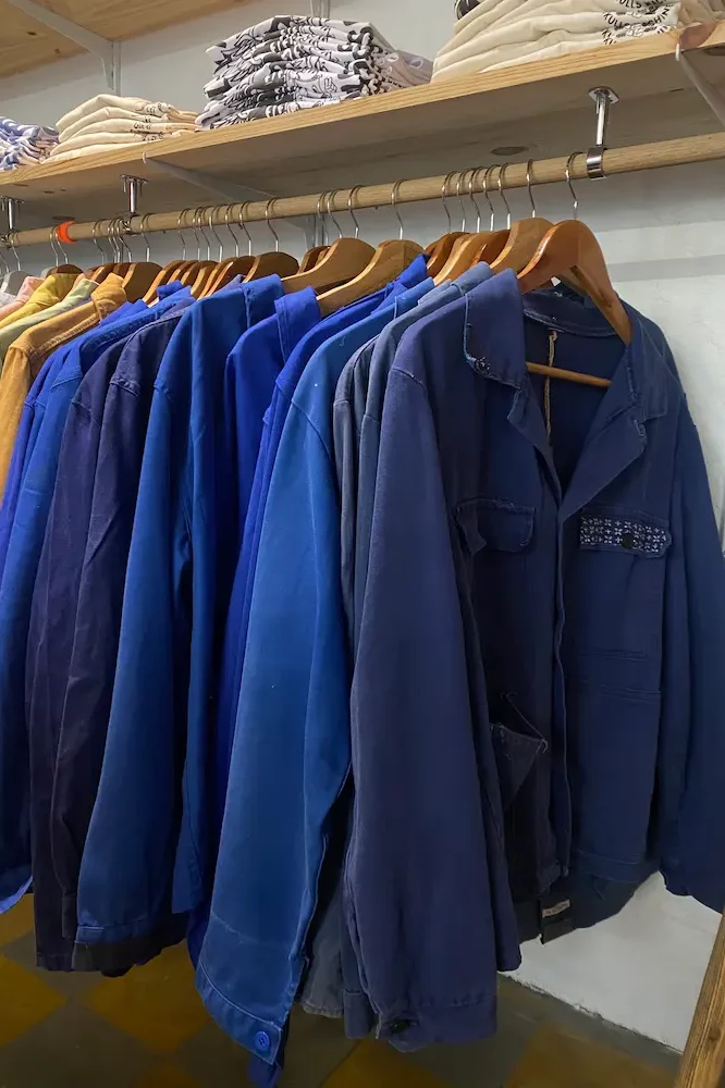 Vestes et pantalons de travail ou encore sacs de pilotes de l’armée de l’air chinés, ici, la seconde main est personnalisée avec des patchs, laissée dans son jus ou rapiécée avec des bandes de tissu signature. On a aimé les tissus patinés, les sacs militaires en toile épaisse, les casquette Ab Ira Leonis et Daytona, les coupes intemporelles et unisexes et l’identité arlésienne de la boutique.