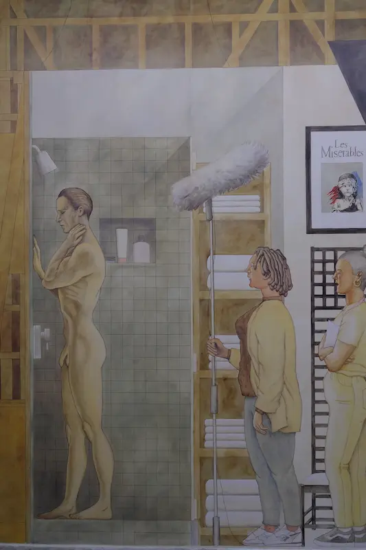 Pour Plastic Newspaper (métaphore empruntée à l’historienne Vanessa R. Schwartz pour penser les nouveaux médias modernes), l’artiste s’est immergée dans les collections du musée d’anatomie de la faculté de médecine de Montpellier. Des fragments de la collection anatomique du Dr Spitzner empruntés à l’institution montpelliéraine sont mis en scène. Leur vocation pédagogique se heurte au voyeurisme et au trouble. Vénus Anatomique, tête d’homme trépané… Au fil du parcours, la dimension morale rejoint la critique. Celle du pouvoir s’illustre au travers de fresques monumentales dont l’artiste renverse le positionnement des regards. Avec Mural Proposal for Jeffrey Epstein’s New York Townhouse, l’humour se fait corrosif.