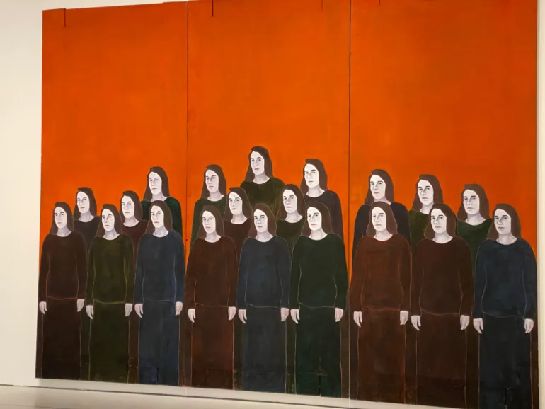 Avec cette exposition, c’est 35 ans de travail de l’artiste Djamel Tatah que nous pouvons découvrir. Des premières œuvres sur bois réalisées dans les années 80, aux dernières créées dans son atelier montpelliérain spécialement pour le rendez-vous du musée Fabre. L’accrochage de grands formats invite à participer à ce grand théâtre où les figures se répètent, où les personnages anonymes sont liés les uns aux autres par un silence qui s’oppose au bruit du monde.