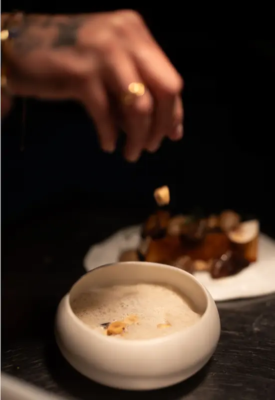 On mange quoi ? Couteaux au barbecue et crème fumée, grenobloise aux algues, noisettes et pomme de terre crispy ; champignons crus et cuits, bouillon mousseux ; maigre et ail noir ; daurade à la flamme et courge… La carte, courte : trois entrées, trois plats, deux desserts, glisse tous les mois. Le couple source ses matières premières à Sète. Sur leur hit liste de fournisseurs : Chez Karine et Serge aux halles, le thonier Avallone, la boulangerie La Carioca, ou encore le marché pour les primeurs.