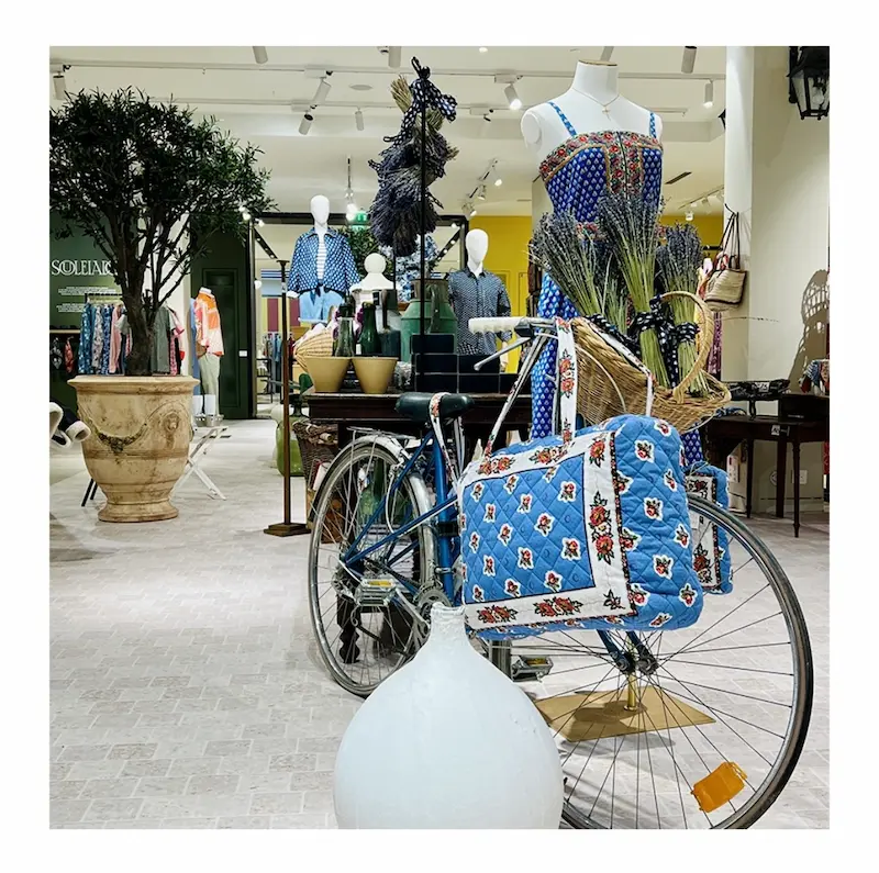 Du prêt-à-porter aux accessoires en passant par l’art de la table fleuri et coloré à souhait, la marque historique du Sud s’installe à l’étage du grand magasin parisien. Elle est son invitée d’honneur et fait rayonner l’art de vivre provençal le temps d’un pop-up estival. Poteries en terre cuites, bouquets de lavandes, oliviers, murs couleur de soleil reconstituent une place de village et son petit café. Ils sont l’écrin des collections Souleiado et font voyager en un clin d’œil de Paris à Saint-Rémy-de-Provence.