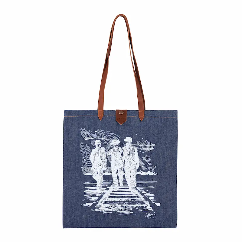 L’œuvre picturale d’Arkane, réalisée sur une toile en denim de 3 mètres de large par 1,50 mètre de haut au sommet des collines cévenoles retranscrit l’histoire de la marque, profondément ancrée dans son territoire. Elle représente trois travailleurs dans un paysage vallonné dont le graphisme a été reproduit pour la collection capsule. Elle évoque les premiers jeans créés par Célestin Tuffery pour habiller les ouvriers et travailleurs des chemins de fer de la fin du 19ème siècle.