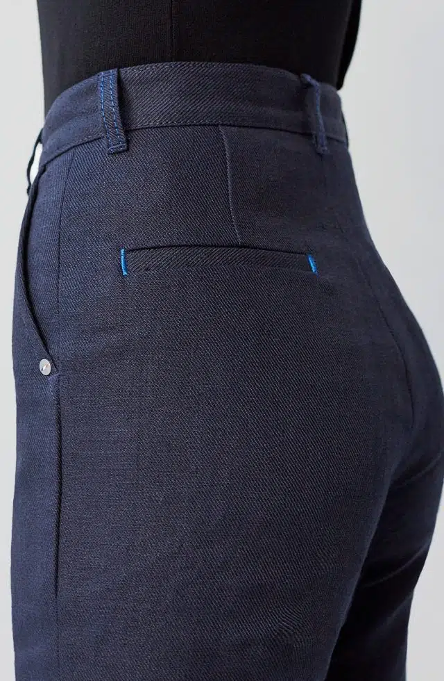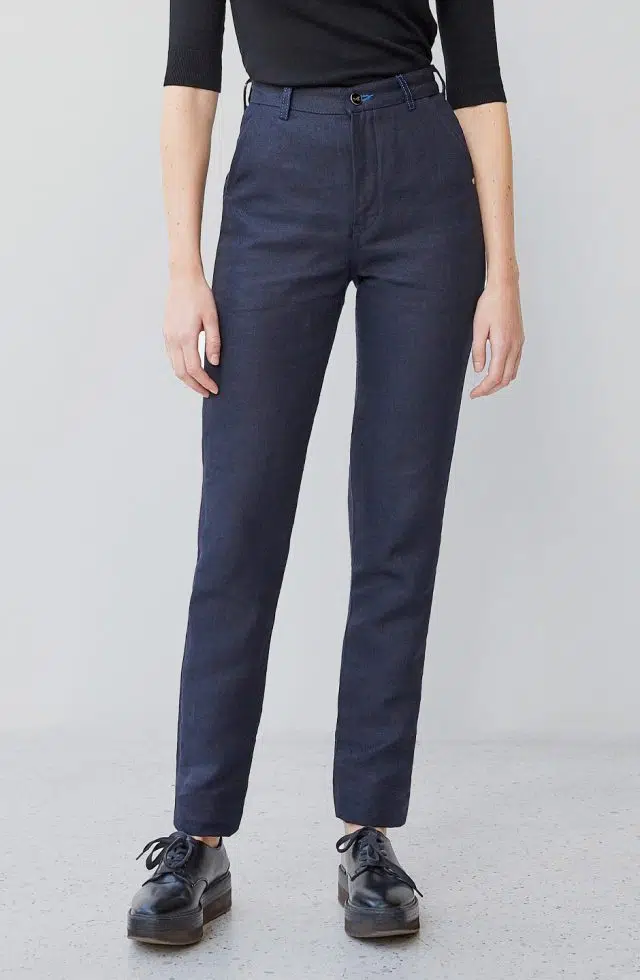Coup de cœur de la rédaction pour l’intemporel Chino ajusté taille haute Alpine en jean 100% Lin Français – Léonie et pour la Veste en jean Laine Française – Méjean unisexe.