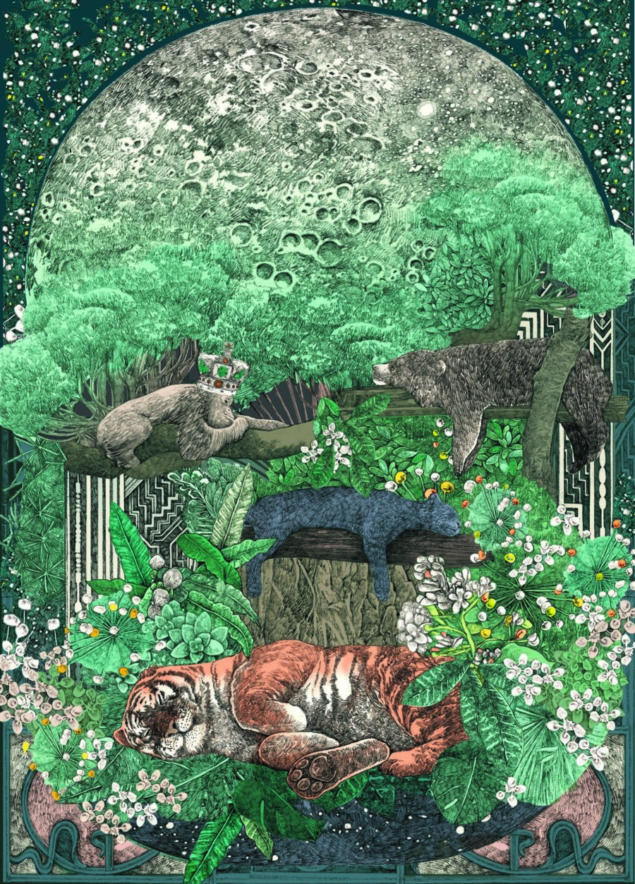 Sur cette terre, à nous prêtée*, il est des animaux de lumière, des êtres phosphorescents, des plantes incandescentes, qui dansent… Il est un pays le Mexique où vous pouvez voir, la nuit au bord de l’océan, un phénomène extraordinairement beau appelé la bioluminescence. C’est une manifestation biochimique naturelle qui émane d’organismes vivants tels que les bactéries, les crustacés, les mollusques ou les méduses (il existe aussi sur terre!). Avec l’arrêt forcé des activités maritimes liées à la pandémie mondiale, des moments inédits de bioluminescence ont fleuri sur les bords des plages désertées des côtes mexicaines… c’est encore un des rares pays où il est possible d’en observer et d’admirer. C’est ce merveilleux éphémère et fragile que Nîmes s’illustre a choisi de proposer aux artistes de Gran Salon Mexico pour illustrer l’Animal et le Vivant. Dans un pays où 10 femmes meurent chaque jour officiellement, Gran Salon Mexico et Nîmes s’illustre ont fait le choix d’inviter des artistes féminines à porter leurs interprétations illustrées de la bioluminescence. Pas de hasard, les symboles sont puissamment convoqués dans cette rencontre des femmes et du vivant!