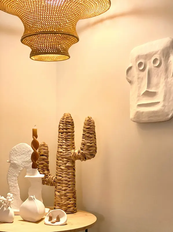 Située au rez-de-chaussée d’un bâtiment des années 30, ce vaste studio ouvert sur cour, est le laboratoire d’expérimentation d’Isabelle Ristorcelli. Un lieu que l’ancienne responsable showroom du grand magasin de mobilier design RBC à Nîmes, module avec des pièces signées, des éléments sourcés par ses soins et des sculptures qu’elle crée : des totems en terre et papier mâché à collectionner. Elle y imagine des scénographies évolutives, vitrines de son savoir-faire en design d’espaces. Un lieu à la fois chic, fantaisiste et inspirant à découvrir absolument : pour prendre une leçon de déco et pour rencontrer une décoratrice à suivre.