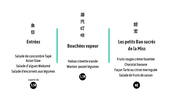 Bon, il est plus que temps d’évoquer la carte et ce que l’on peut déguster chez Miss Bao. Et il faut bien l’avouer, nous on s’est régalés avec la volaille croustillante !